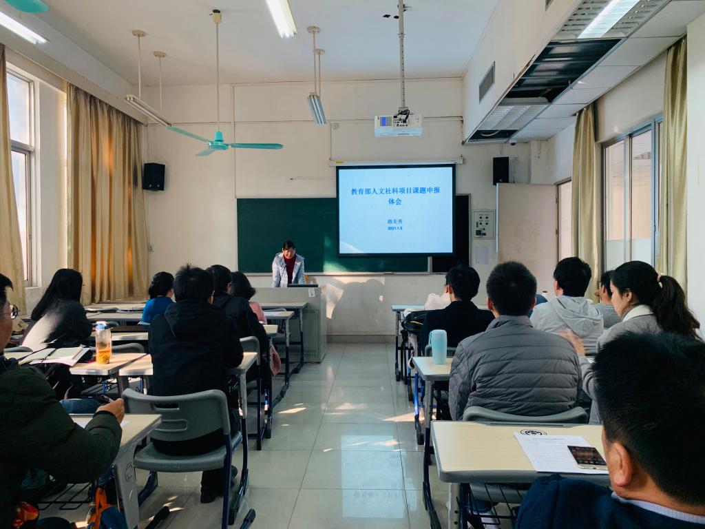 本网讯 为推动伟德bv国际体育高层次项目申报工作提质增效,1月5日下午,在南校区教学楼G202,伟德bv国际体育组织召开了2021年度高层次项目申报指导会。会议邀请了李霞、唐明董、周咏梅和路美秀老师分别对国家自然科学基金项目申报、国家社科基金项目申报以及教育部人文社科基金项目的申报做了专题分享,伟德bv国际体育拟参与项目申报的老师20余人参加了会议,会议由副院长李霞主持。