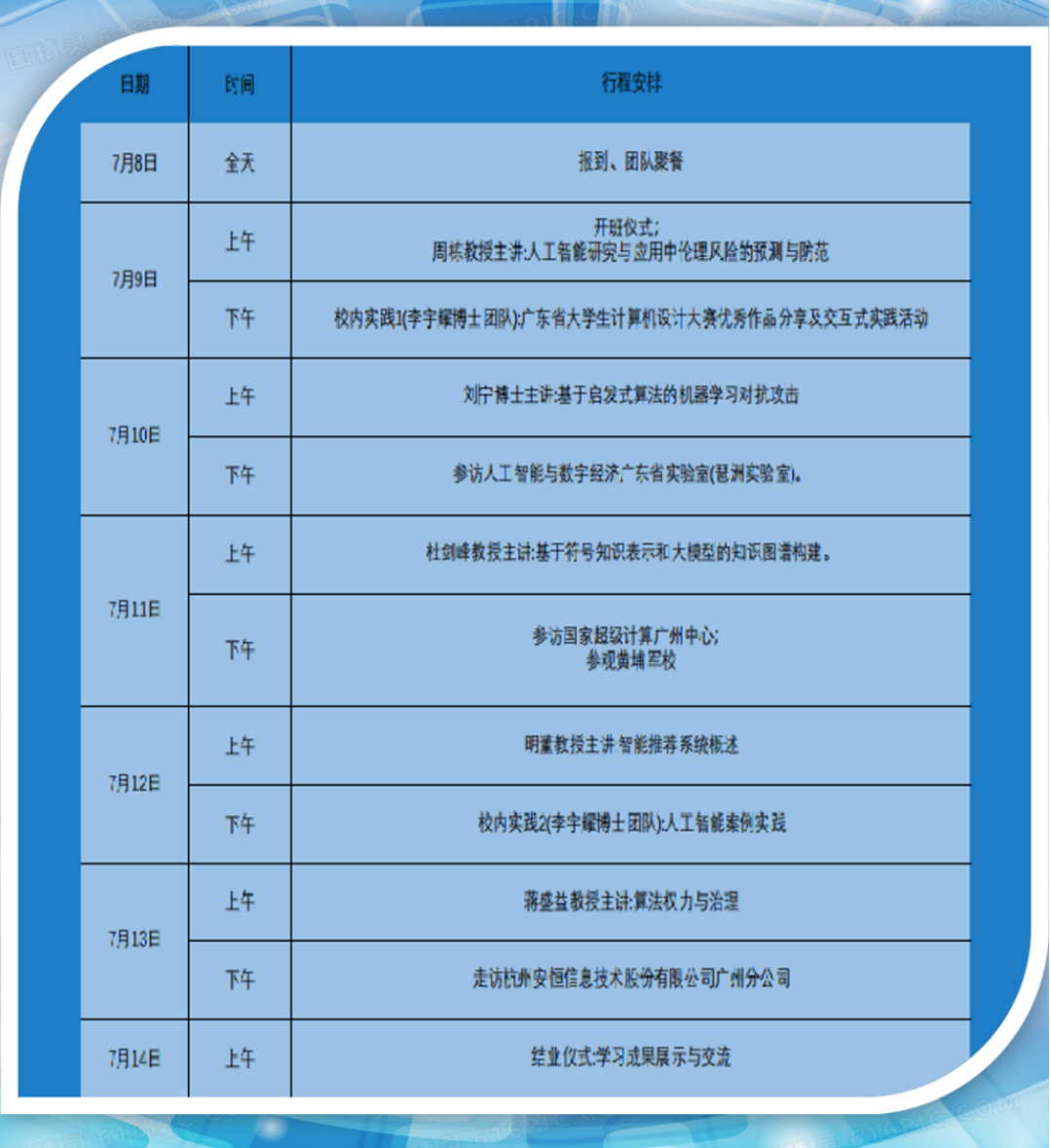 7月9日-13日,每天上午的讲座内容丰富多样,涵盖了多个前沿领域,让学员们对人工智能行业有了更全面深入的认识。