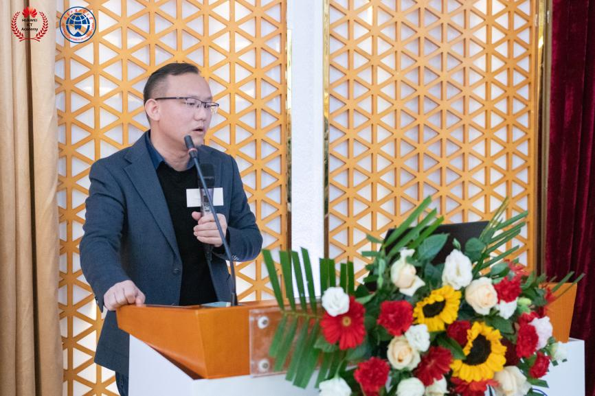 刘建达副校长在会上致欢迎辞,他表示,广东外语外贸大学致力于培养国际化、创新型人才。华为ICT大赛为学生提供了重要平台,展现学生专业技能和探索精神。此次大赛中,广外学子表现优异。他强调,面对新技术变革,教育培养模式和教育体系都需创新以适应发展需求。最后,他表示期待与华为和各公司深化校企合作,共同推动人工智能教育高质量发展。