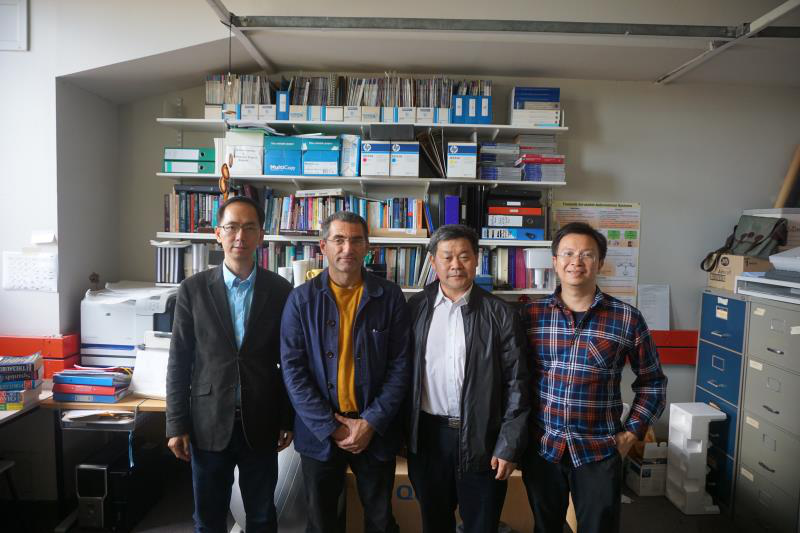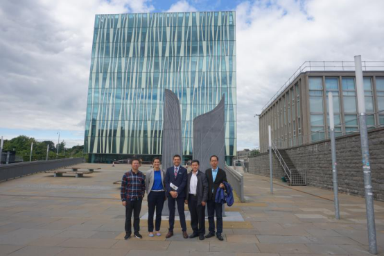 图2我方访问人员与英方计算机科学系主任(左二)和世界名校项目英方负责人(左一)在英国阿伯丁大学国王学院计算机科学系办公室内合影
