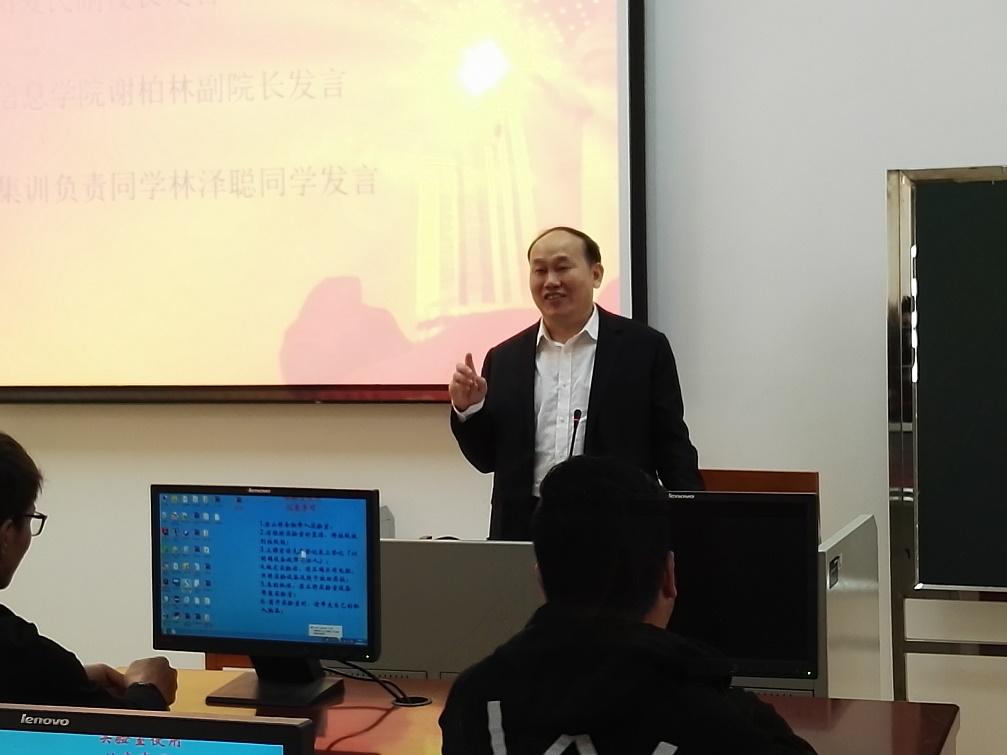 阳副校长首先对同学们假期留在学校继续学习点赞,寄语同学们要珍惜本次学习机会,在程序设计学习中要不断吸收好的方法,要发挥团队作用,积极讨论共同进步。阳副校长同时感谢学院、相关老师和学生教练对程序设计比赛的支持和付出。