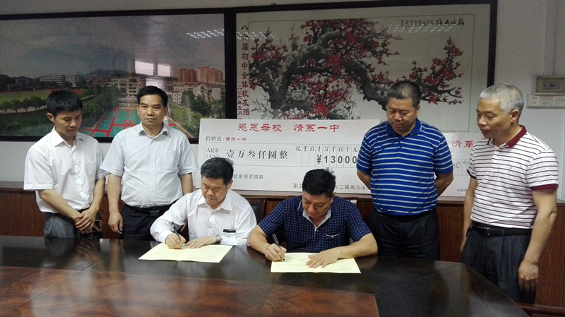 图5.6蒋盛益院长代表学校与佛冈一中签约授牌