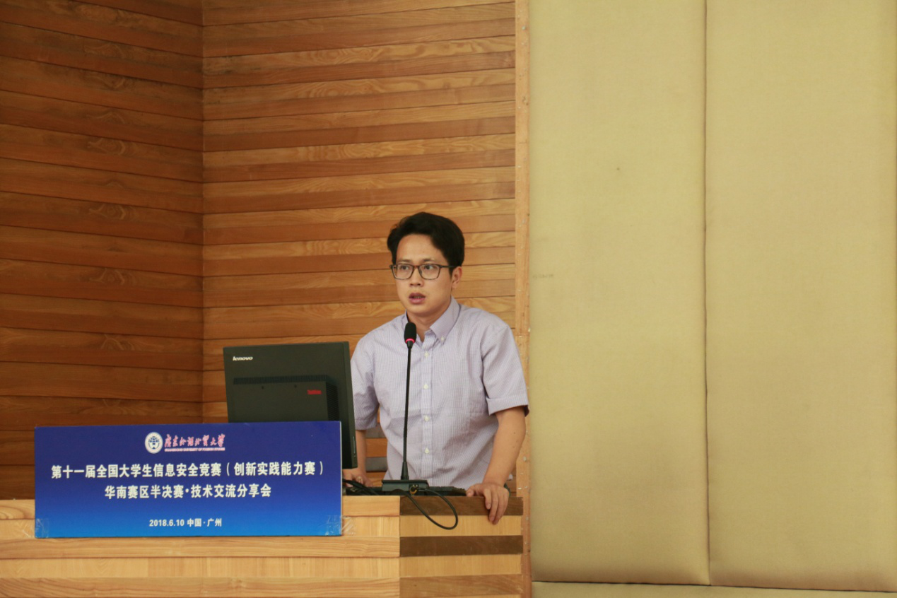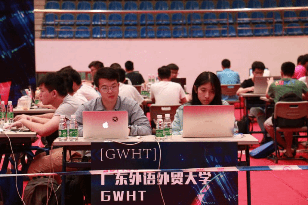 2018年6月9日-10日,第十一届全国大学生信息安全竞赛半决赛(华南赛区)在我校北校区体育馆举行,来自广东外语外贸大学、中山大学、华南理工大学、广西大学、暨南大学、桂林电子科技大学等高校的13支队伍参加了本次比赛。经过12小时的激烈角逐,来自伟德bv国际体育网络安全实验室的GWHT战队荣获冠军,成功晋级总决赛。GWHT战队由六位2015级本科生(曾泽君、徐传懋、叶豪、刘浩仪、何韬、黎志江)组成,指导老师为谢柏林。