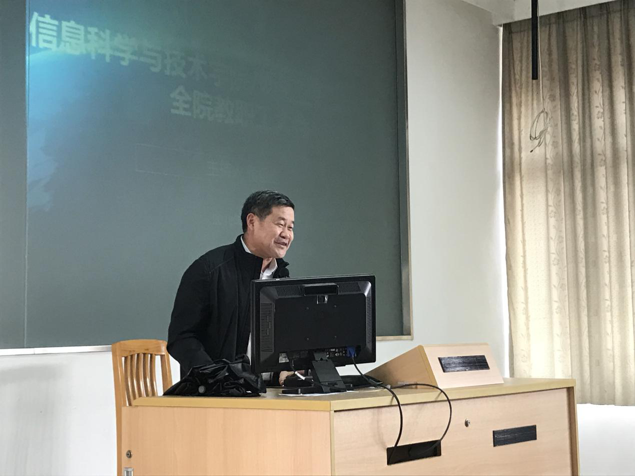 2018年12月27日下午,学院在实验楼B107召开了全体教职工大会,此次会议是学院新一届领导班子组建后首次集中亮相会。会议由蒋盛益院长主持。