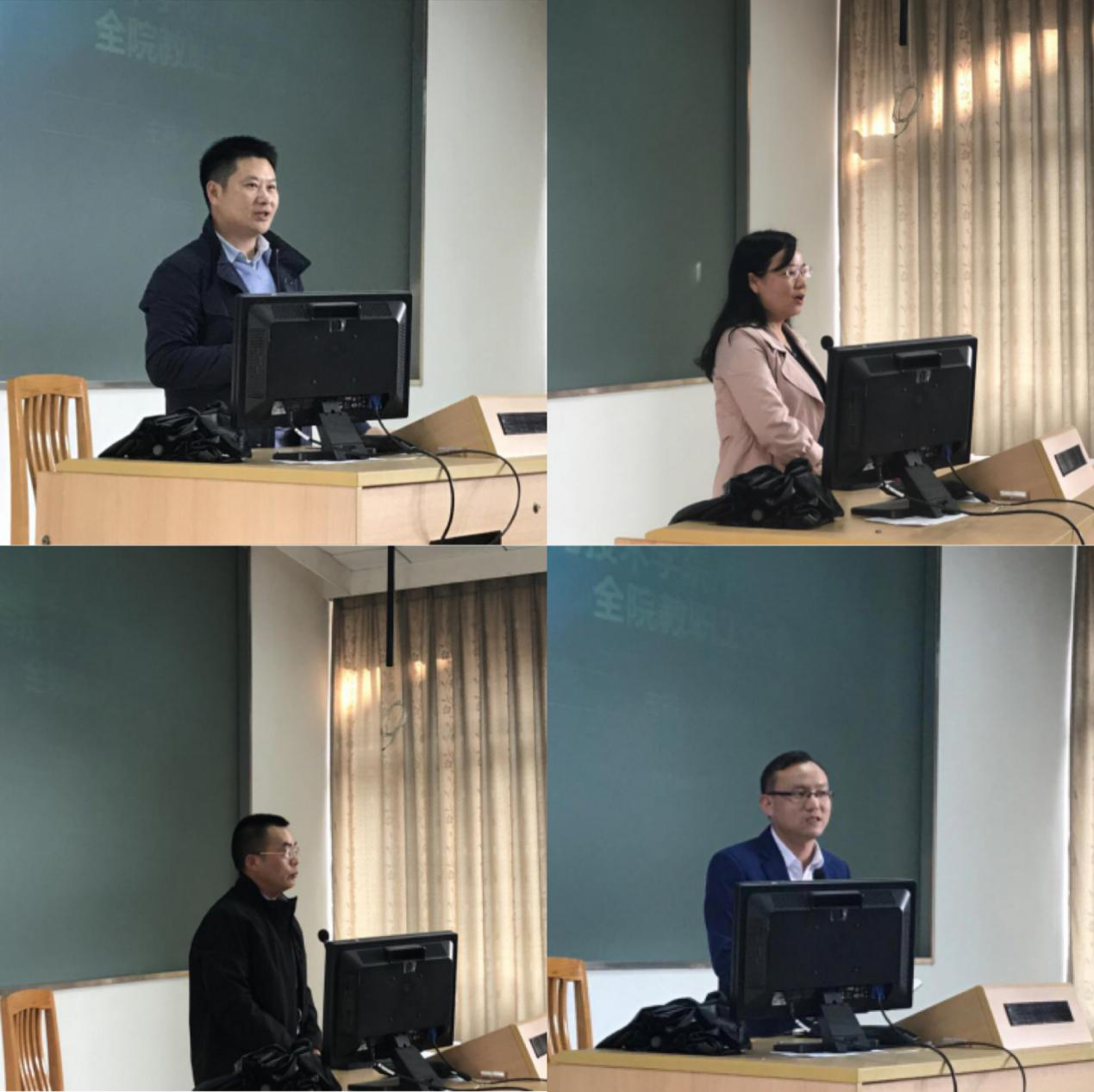 肖锋书记进行发言,他提出关于转变与思考的理念,鼓励学院教师积极参与扶贫活动。李霞副院长表达了接手新工作的信心与决心,谈论自己的科研管理工作的经验与理念,并鼓励全院老师在新的学期积极进行科研项目申报。最后王常吉副院长、谢柏林副院长进行发言,提出对往日工作的总结与对未来工作的思考。