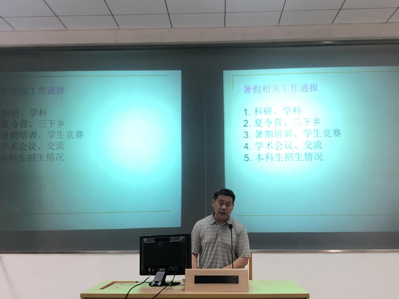 院长蒋盛益从学术科研、学院夏令营、暑期培训、学生竞赛、学术会议、本科生招生等工作进行补充发言,他强调本学期的工作重点要加强内涵建设,努力打造品牌;要创新基层党建,提高党的建设质量;要对本科、研究生教育质量保障进行研讨;要加强招生宣传,对校友分会进行筹建。