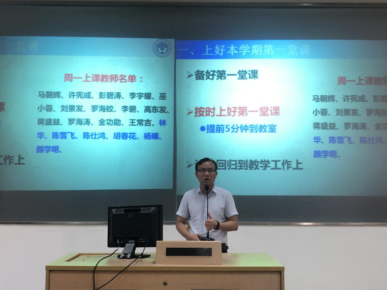副院长谢柏林向学院教师强调“上好本学期第一堂课”的重要性,他希望各位教师在新学期要积极申报省级校级质量工程、教改项目、要做好新生专业教育工作、做好2019级软件工程辅修教学等工作。