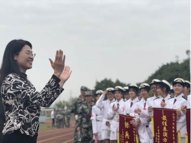 表彰大会结束后,学院党委书记朱珍葶进行现场讲话。朱书记对同学们在军训期间取得的优异成绩表示祝贺,希望同学们将军训中学到的优良传统和作风在今后的学习和生活加以保持,以饱满的精神风貌迎接美好的未来。