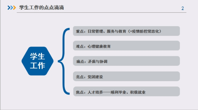 分享会上,肖锋副书记以“强化队伍建设,提升履职能力”为题,介绍了信息学工团队文化。高男与大家分享了学生工作的重点、难点、痛点、亮点与焦点。