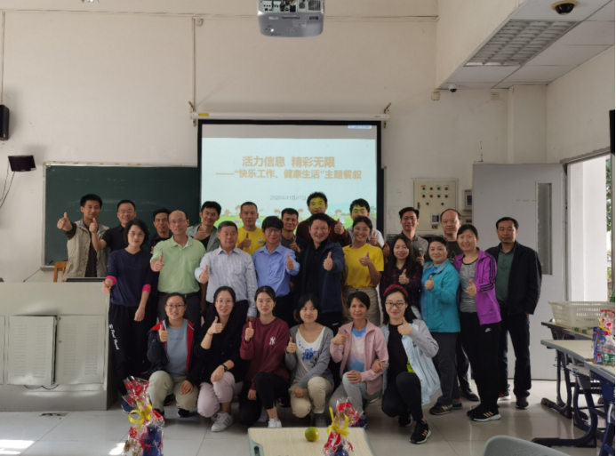 趣味运动会结束后,学院工会组织教师们在教学楼G107举办学院“快乐工作 健康生活”主题餐叙活动。学院领导及老师们欢聚一堂,就健康快乐生活主题畅所欲言、意犹未尽。