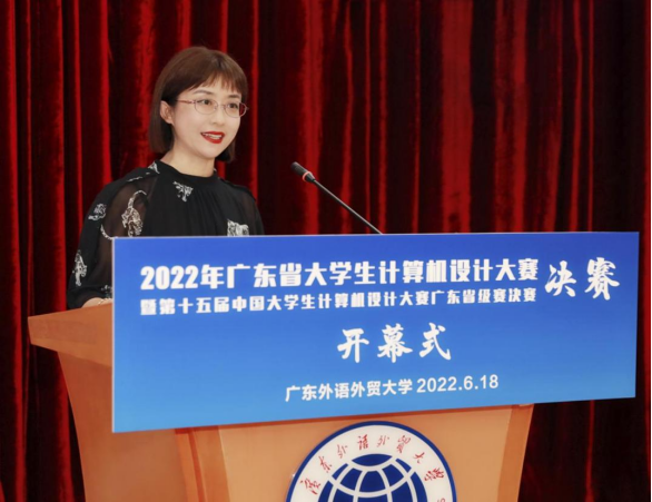 广东省教育厅高教处姜琳处长在致辞中表示,“广东省大学生计算机设计大赛”是教育厅每年主办的十项赛事之一,今年在传统赛项的基础上对接国赛新增了人工智能挑战赛项,参与人数和作品数都大幅增长。她很高兴在比赛中看到不同学校、不同专业的大学生以计算机技术为手段,进行创新实践,开阔视野、增长见识,提升创新能力、团队合作能力和解决问题的能力,希望同学们通过赛事成为为未来计算机领域的创新能手,为实现“中国梦”、为广东创新发展及大湾区建设添砖加瓦,也希望参赛师生能传递成长的好声音,让更多的人爱上创新,加入今后的竞赛活动,并在其中历练成长。