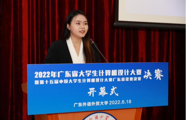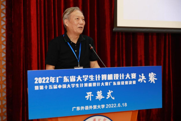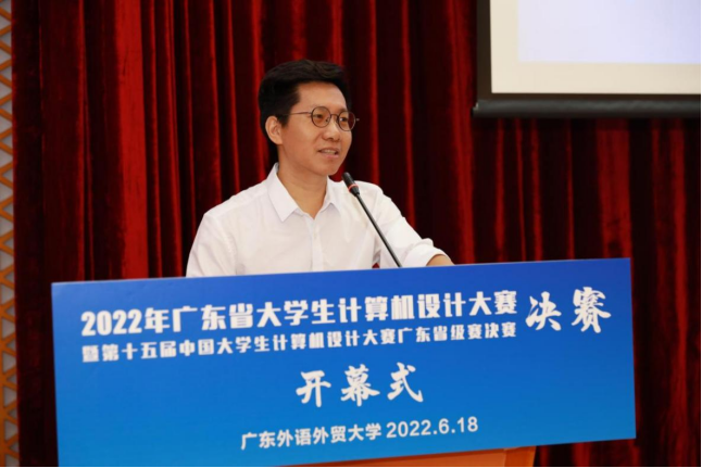 本网讯 2022年6月18日,由广东省教育厅主办的2022年广东省大学生计算机设计大赛暨第15届中国大学生计算机设计大赛广东赛区决赛在广东外语外贸大学大学城校区成功举办。广东省教育厅高等教育处处长姜琳,广东外语外贸大学校党委常委、副校长焦方太,教务处副处长袁琦,信息科学与技术学院、网络空间安全学院院长蒋盛益,党委书记朱珍葶,艺术学院副院长(主持工作)王凯宏以及70位专家评委出席了决赛开幕式。开幕式由信息科学与技术学院/网络空间安全学院副院长王常吉主持,并通过Bilibili平台直播。