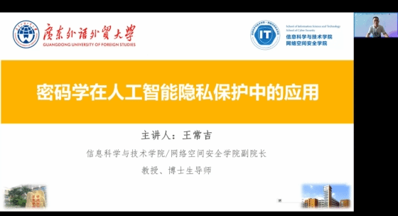 7月11日-7月15日上午,来自伟德bv国际体育的五名教授从五个不同的角度为学员们讲解了人工智能应用领域的科普知识。蒋盛益教授以“数据价值、陷阱、伦理”为题,对人工智能核心要素之一的“数据”从三个维度进行了讲解:数据是一种新的战略资源,发掘数据价值具有重要意义但容易产生偏差、大数据的使用在带来巨大便利的同时也引发了系列伦理问题。李霞教授带来题为“多模态信息融合在自然语言处理中的应用”的讲座,介绍了视觉、听觉、触觉等多模态的概念,并就情感分析为例讲解了多模态融合对自然语言处理等其他场景的重要性。丘心颖教授带来题为“多模态信息融合在自然语言处理中的应用”的讲座,介绍了词嵌入、BERT、激活函数和单多层感知器等概念与应用,并通过深入浅出的方式讲述了可读性特征之间的关联、语言特征嵌入表示学习与结论分析等内容。杜剑峰教授带来题为“符号知识表示和通用知识图谱构建流程”的讲座,他从多个行业分析了知识图谱的重要性,介绍了知识图谱的知识表示理论基础和通用知识图谱的构建流程,并以中文三元组抽取的原型系统为例,展示了知识图谱的实践运用。王常吉教授带来题为“密码学在人工智能隐私保护中的应用”的讲座,他从斯巴达密码棒和凯撒密码两种代表性的古典密码谈起,介绍了密码学从艺术走向科学的发展过程,并讲解了零知识证明和函数加密等密码学概念及其在隐私计算中的应用。