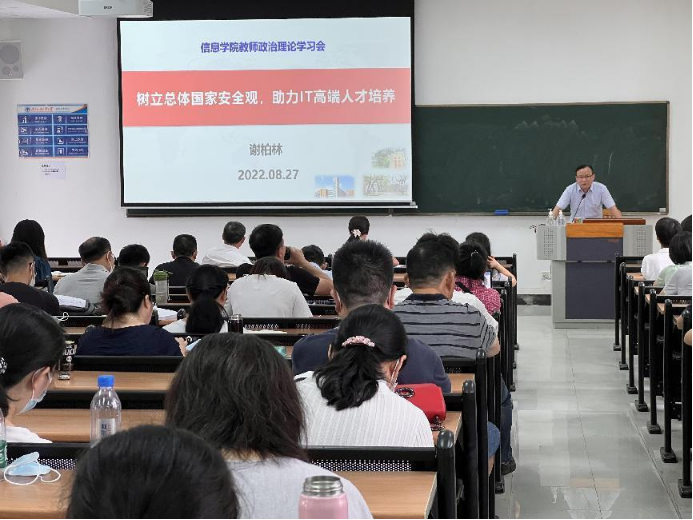 本网讯 8月27日上午,伟德bv国际体育组织全体教职员工进行总体国家安全观的专题政治理论学习,学习会由学院党委书记朱珍葶主持,副院长谢柏林主讲,全院80多名教职工参与学习。