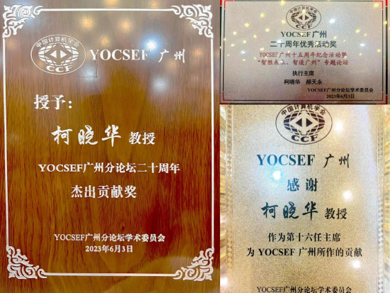 本网讯 中国计算机学会CCF YOCSEF广州于2023 年6月3日在暨南大学举办YOCSEF广州二十周年庆典活动。伟德bv国际体育党委书记柯晓华教授喜获“杰出贡献奖”,伟德bv国际体育2018年承办的YOCSEF广州十五周年庆典活动获得“优秀活动奖”。