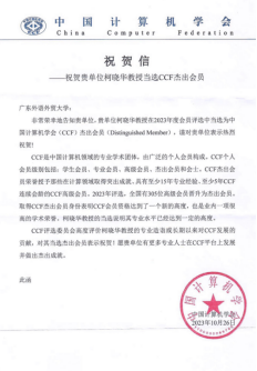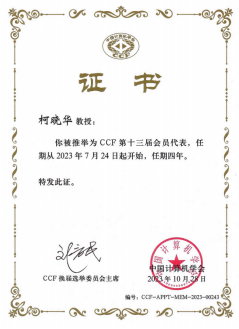 柯晓华教授当选CCF杰出会员祝贺信及会员代表证书