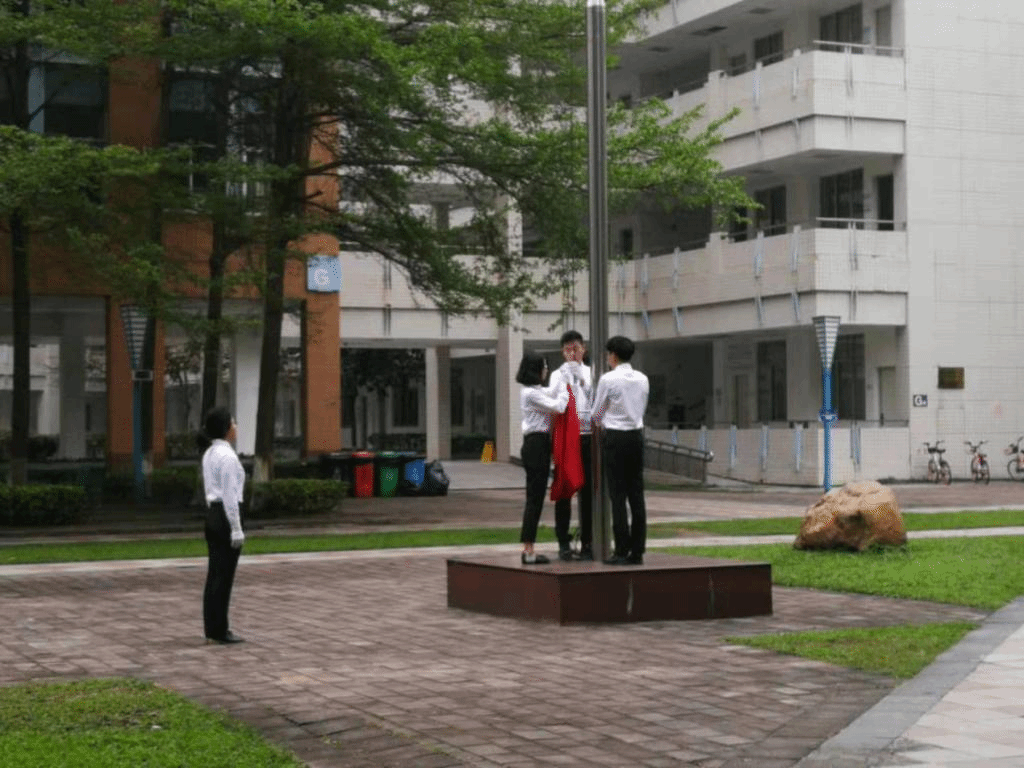 天蒙蒙亮,但同学们早已放好书包,自觉排列整齐,精神抖擞的肃立于教学楼中庭,等待着升旗仪式的正式开始。