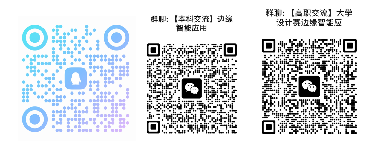 请扫描下方二维码,加入“人工智能挑战赛-边缘智能应用创新赛项”赛题交流讨论群(申请加入请注明:学校+姓名)