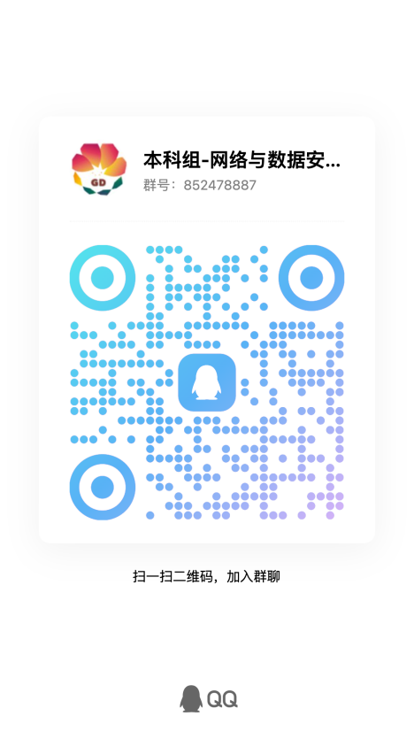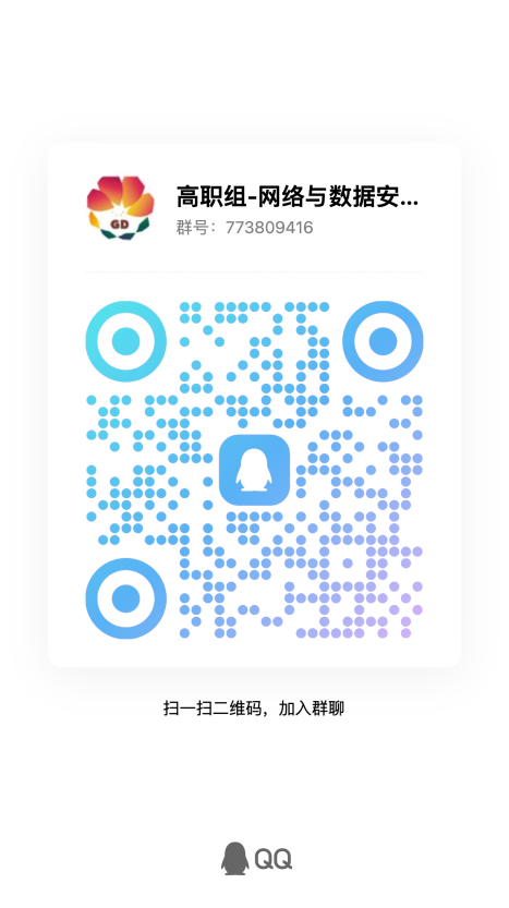 请各位选手报名后扫描下方二维码,依据赛道加入“网络与数据安全挑战赛”交流讨论QQ群(申请加入请注明:学校+姓名)。群内会进行重要赛事通知及答疑。