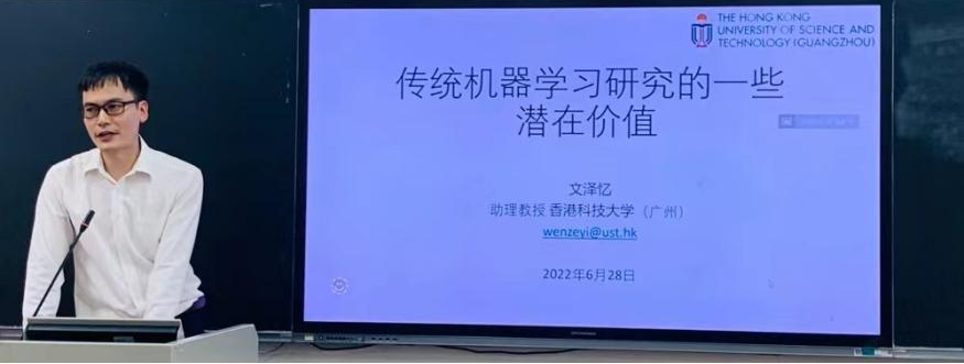 本网讯 2022年6月28日下午,香港科技大学(广州)文泽忆博士为伟德bv国际体育师生开展主题为“传统机器学习研究的一些潜在价值”的学术报告,伟德bv国际体育教师、研究生和感兴趣的本科生聆听了报告,讲座由伟德bv国际体育李霞副院长主持。