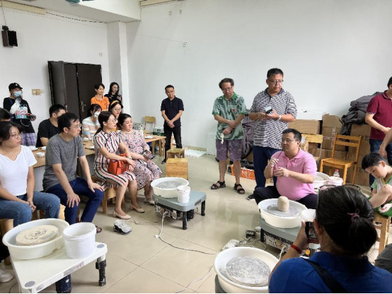 为迎接、庆祝党的生日,丰富工会会员的文化生活,进一步增强工会的凝聚力和向心力,6月30日下午,学院党委携手工会组织学院教工前往艺术学院,两院共同开展迎七一主题党日暨工会活动——“坚定文化自信,传承工匠精神”主题陶艺体验活动。艺术学院党委副书记连勇,美术系主任白波教授、杜鹏教授、程昱教授,团委书记谭珺如,共同带领大家参观陶艺教研室,学习陶艺文化,领略陶艺制作过程、体验陶艺釉上彩绘。