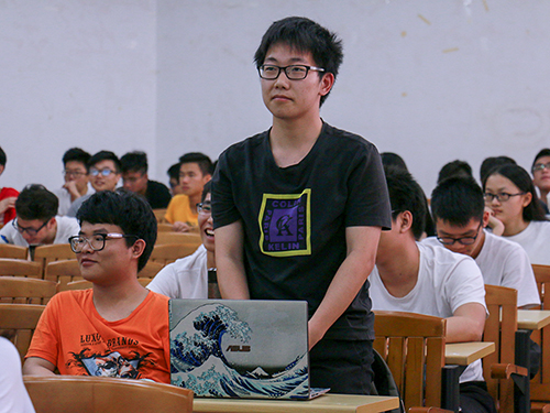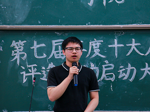 紧接着由第六届年度科技人物张宏业分享他的个人经历以及经验。在分享之前,张宏业首先鼓励同学们深入去了解每位年度十大人物背后的故事,感受他们的魅力。随后张宏业从信念、选择和坚持三方面为同学们分享了他的经历与经验。在讲信念这方面时,他向同学们提出了三个问题:想要获得什么?应该怎样付出?遇到瓶颈怎么解决?并结合自身经历向同学们展示了自己对这三个问题的回答。在讲选择这方面时,他着重分享了自己加入数据挖掘实验室的经历,并谈到当初做出的加入实验室的选择对现在的他的最重要的影响,即是帮助他明确了前进的方向:让他选择了考研。最终他也成功考入哈尔滨工业大学深圳研究院。最后他向同学们重点强调了坚持的重要性,并告诫同学们切忌浮躁。张宏业的分享让同学们更进一步的体会到了十大人物的魅力与风采。