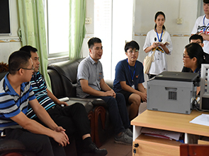 到达学校后,麦书记与杨志增、谢石顺辅导员在“蝉鸣乡伴”服务队队长与组长们的陪同下与当地陆雪芬老师一起到达会议室,对三下乡工作进行了探讨。会议中,陆雪芬老师谈及队员们的志愿服务,对此表达了对服务队队员的由衷感谢,但同时也建议增加教师数量,以达到更好的管理效果。麦书记也提议到以后的继续合作中,可以增设“人工智能”“趣味外语”等课程,发挥广外的语言特色以及伟德bv国际体育的技术特长。