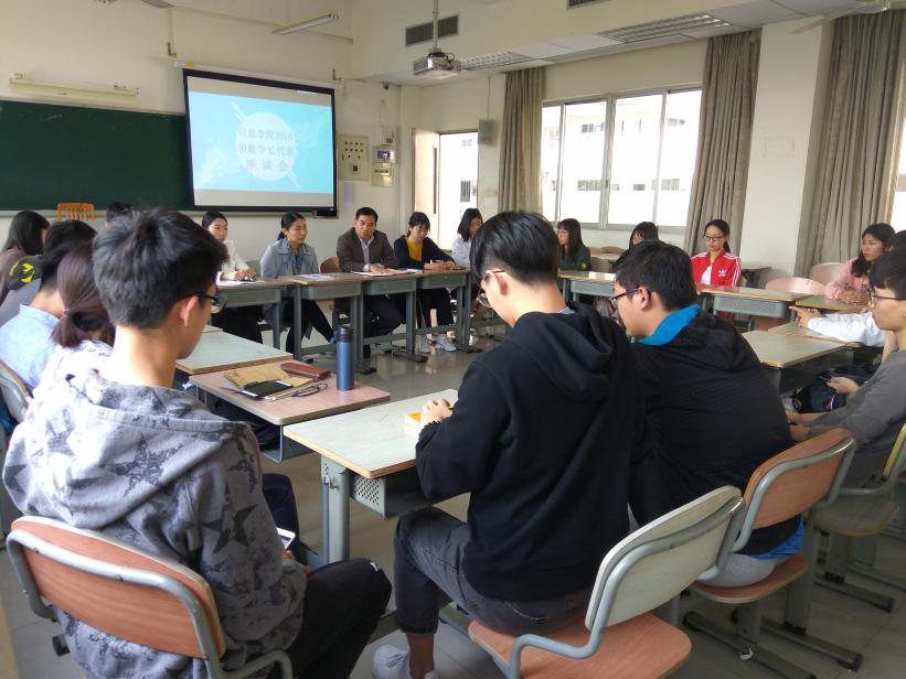 本网讯3月22日,广东外语外贸大学信息科学与技术学院“2017级领航学长代表座谈会”在教学楼G309顺利召开。信息科学与技术学院(以下简称“伟德bv国际体育”)党委副书记麦培年、2017级辅导员董婷、张文萃及二十位优秀的领航学长聚集一起,共同探讨如何更好的发挥优秀学长的传帮带作用,在思想、品德上引领17级学生。