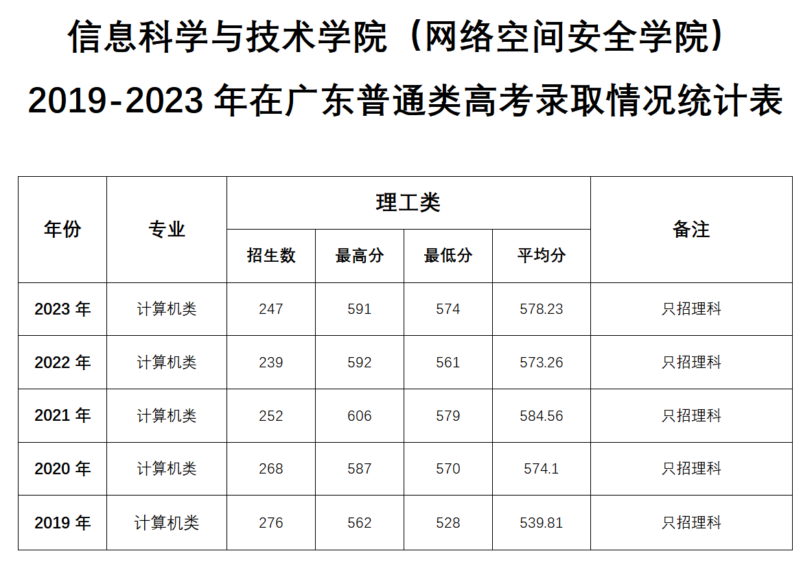 学院设有计算机科学与技术系、软件工程系、网络安全系,现有计算机科学与技术、软件工程、网络空间安全3个本科专业。其中计算机科学与技术专业是国家级一流专业建设点、教育部特色专业;软件工程专业和网络空间安全专业是广东省一流本科专业建设点。学院拥有网络空间安全一级学科硕士学位授权点和电子信息专业硕士学位授权点。