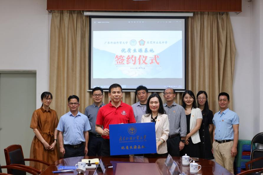 伟德bv国际体育代表学校与东莞市石龙中学签署“优质生源基地”协议,举行授牌仪式,副校长罗达明,教务处朱少山副主任、教务处刘石养副主任、教研处许少颜副主任出席仪式。签约仪式后,双方围绕大学基本情况、学院专业设置、学校人才培养等问题进行座谈交流。罗达明副校长简要介绍学校学生规模及历年成绩等情况,希望更多学生能考取广外;柯晓华书记介绍广外基本情况及高考招生政策,表示欢迎该校学生报读广外,同时希望后续与学校多沟通联系,进一步开展招生宣传、政策指引、科普讲座等工作,搭建好考生通往大学的信息桥梁。