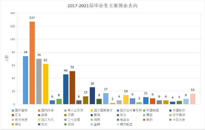 附图表:2017-2021届毕业生主要就业去向及考研、海外留学院校分布