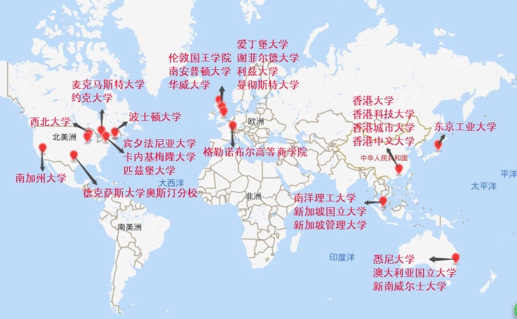 2017-2021年毕业生主要海外留学院校分布