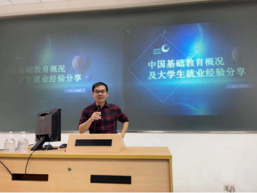 陈晓锋校友为同学们做了以“国内教育概况及大学生就业核心能力分享”为主题的分享,并结合自己多年来在K12教育领域的工作经历和感悟,以及这一就业市场对人才的需求,从中国基础教育概况、高等教育的意义和核心人才观等三个方面展开本场分享。