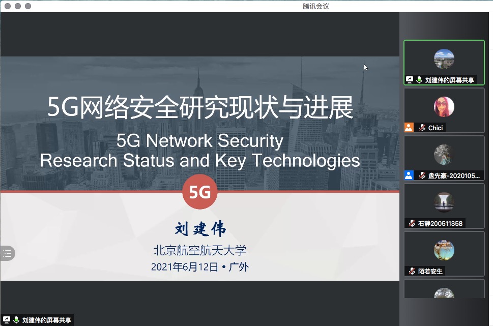 随着5G网络的快速建设和发展,5G网络的安全问题已经成为国内外的一个研究热点。刘教授从什么是5G技术、目前5G技术的进展情况以及应用场景开篇,为同学们介绍了5G网络的关键技术,同时谈到了目前5G网络面临的五大安全挑战:新的业务场景、新技术与新特征、新商业模式、多种接入技术和隐私保护。刘教授还从统一认证框架、虚拟化安全、边缘计算安全和智能终端安全几方面介绍了5G网络安全目标及安全能力要求,以及5G网络安全标准在国内和国际的发展现状。最后,他介绍了所在团队将5G应用在国防领域的一些工作进展,并鼓励广外学子们积极报考北航网络空间安全学院。