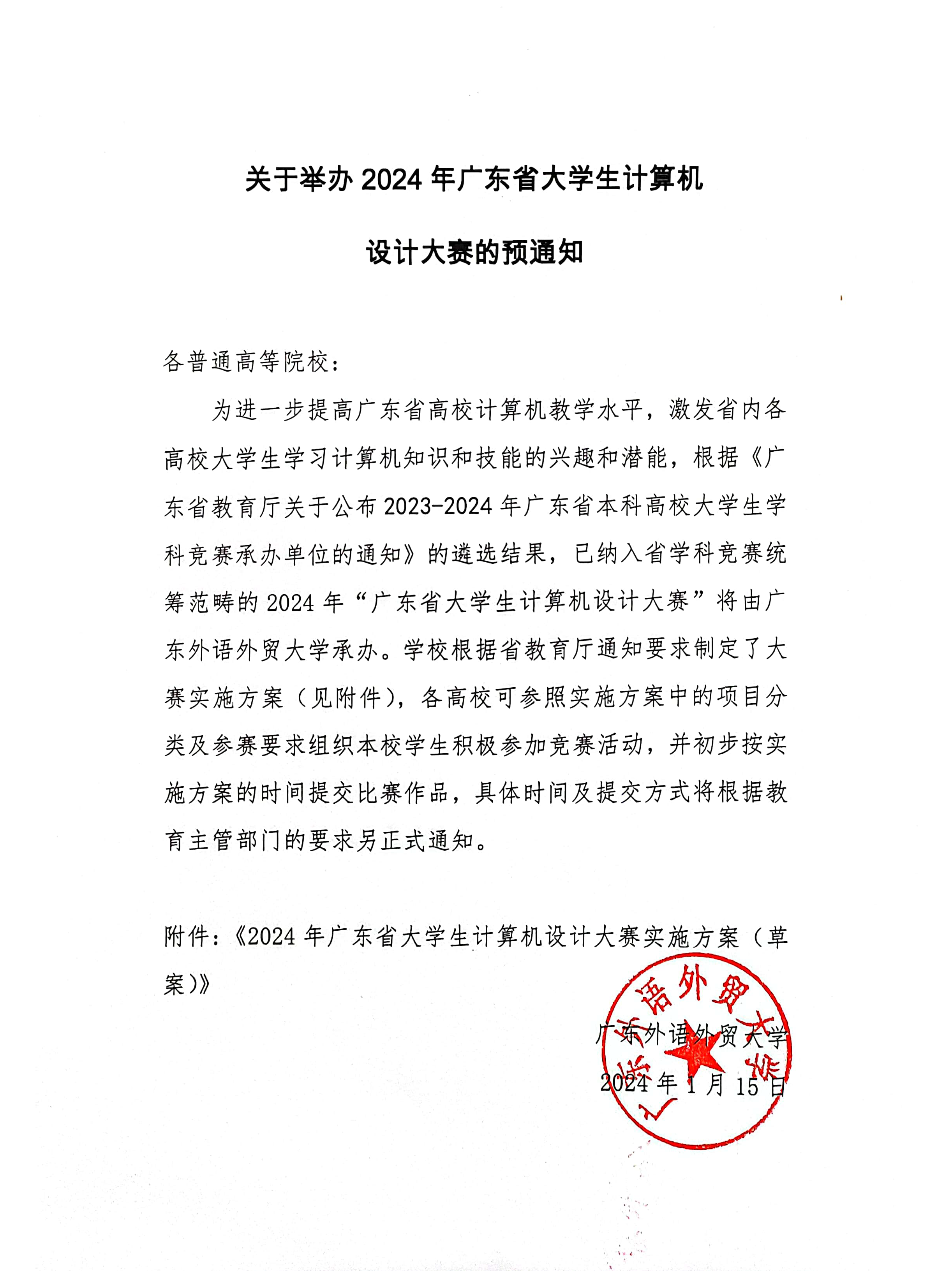 关于举办2024年广东省大学生计算机设计大赛预通知
