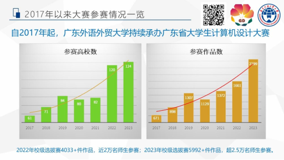 据悉,广东省大学生计算机设计大赛由广东省教育厅主办,我校自2017年承办以来,大赛参赛高校数和参赛作品数持续增长,并初步建设成为我省计算机技术应用教学和创意交流的重要平台。