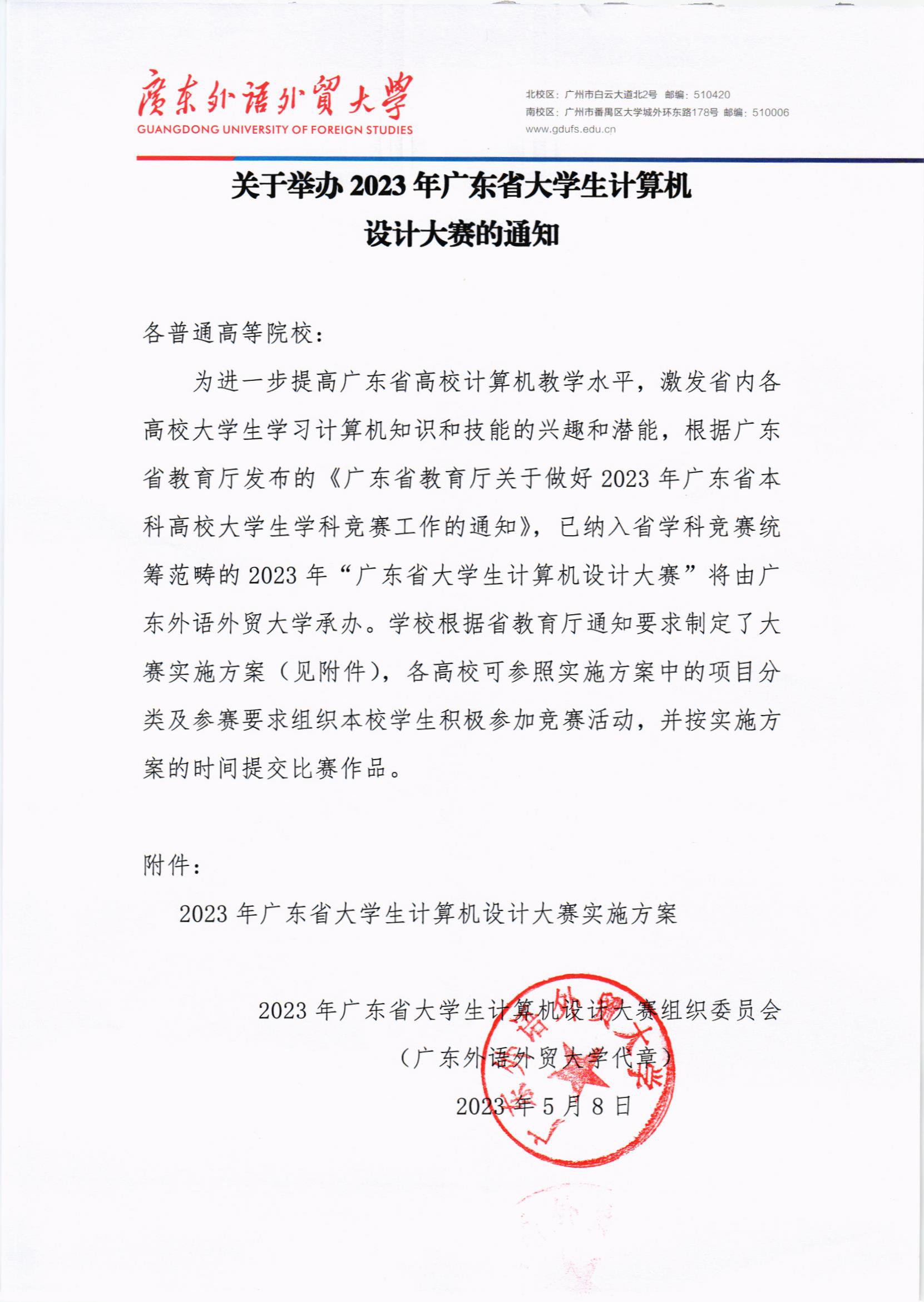 关于举办2023年广东省大学生计算机设计大赛的通知