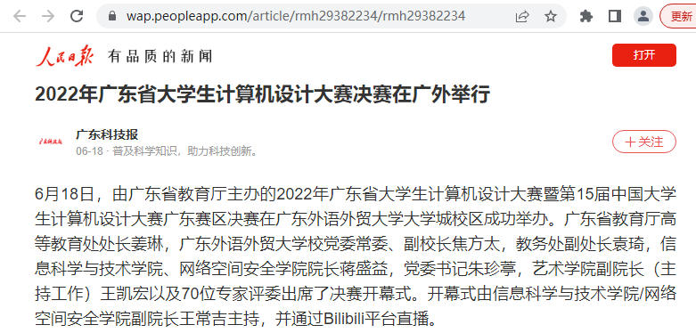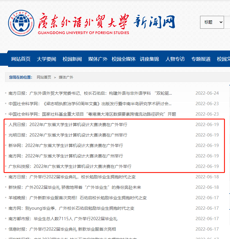 除了省内参赛师生的热情参与,本届大赛还获得了社会的广泛关注,人民日报、光明日报、新华网、南方网、广东科技报等媒体对大赛决赛进行了广泛的报道。