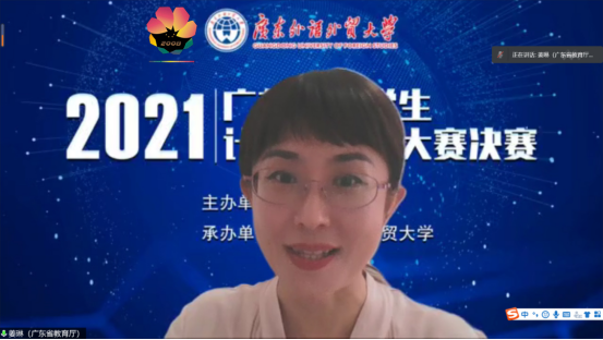 来自广东外语外贸大学的西班牙语专业2020级张斯敏同学作为参赛学生代表进行发言,她表示今年是第一次参赛,当下每个人正身处在无数计算机和网络搭建的时代,自己应成为计算机应用的设计者和创造者,而计算机设计大赛正是自己展示与创造的平台,从中可与全省乃至全国高校的同学们一起学习交流,一起竞争,一起进步。
